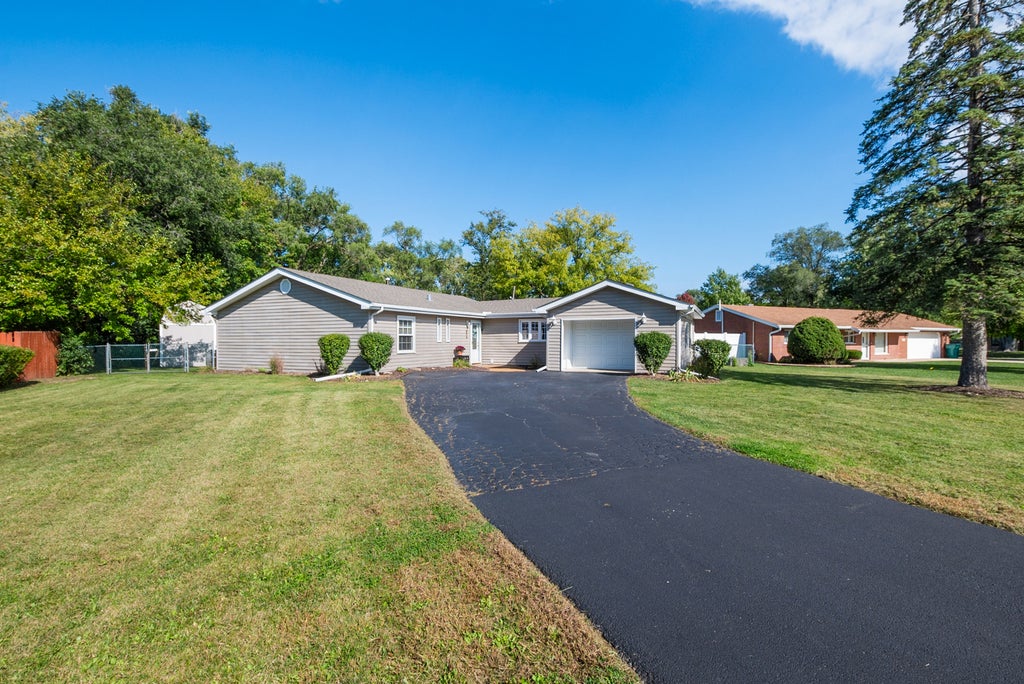 Welcome to this charming and well-maintained ranch home, perfectly situated on a spacious half-acre lot offering peace, privacy, and a picturesque tree line view. From the moment you arrive, you'll appreciate the inviting curb appeal and thoughtful updates found throughout. Step inside and notice the tastefully painted interior, newer hardwood floors, and recessed lighting that enhance the home's warm and modern feel. The foyer features built-in seating and storage, providing both function and style. The layout includes a comfortable living room, dining room, and a built-in butler's pantry for added convenience. The eat-in kitchen is equipped with stainless steel appliances, a new stainless steel sink, a dishwasher (2019), and a reverse osmosis system-making it perfect for everyday cooking and entertaining. The breakfast area offers a sliding glass door leading out to the patio, seamlessly blending indoor and outdoor living. The laundry room, remodeled in 2019, includes a new utility sink, space to dry clothes, and a new washer and dryer (2019). The home offers three spacious bedrooms and two beautifully updated baths, including a full hall bath remodeled in 2024 with new tile, vanity, and fixtures, and a half bath updated in 2019. An attached 1.5-car garage provides extra storage cabinetry for added organization along with plenty of additional storage space. Step outside to enjoy your own private retreat-featuring a fully fenced backyard, patio, and a fire pit area overlooking the serene tree line oasis. A large storage shed built in (2021) with a concrete floor and electricity adds extra room for hobbies or equipment. This beautifully updated ranch offers the perfect blend of comfort, style, and functionality-all on a peaceful lot with plenty of space to relax and entertain!