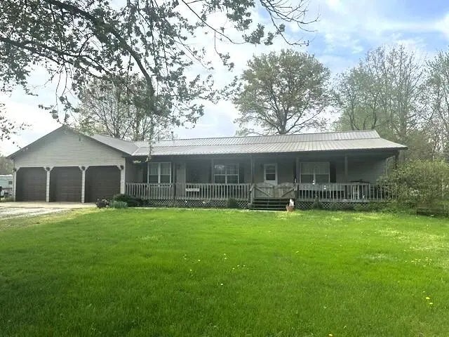 Country Living at it's best! Welcome to this beautiful 3 bdrm, 2 bath ranch that blends comfort w/functionality. From the inviting, covered front porch to the scenic backyard view, this home has everything you need and more! The open living space between the living room & kitchen is great for hosting large gatherings. The kitchen comes with appliances, offers ample cabinet storage, and a custom island for casual dining. Off of the kitchen, a welcoming family or dining room awaits w/cathedral ceiling, skylights, cozy pellet stove and sliding doors that open to the covered deck and privacy fenced back yard. French doors from the family room lead to an office space or den-ideal for working from home or relaxation. The primary bedroom is generously sized, offering ample closet space and a bath w/double sinks for added convenience. The separate laundry room comes equipped with washer, dryer, and some built in storage. The 3 car attached garage is perfect for extra vehicles, outdoor equipment, & includes a workshop area w/a gas wall heater, & cedar closet. Backyard amenities include a storage shed & a covered deck for relaxation & enjoying the beautiful southern view!