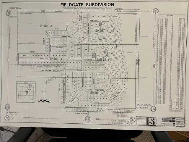 Developers and Investors this shovel ready land is ready to go! The property formerly known as the Fifth Third Bank Trust No. 1495 encompassed 181.65 acres before the development agreement between the Village of Beecher, Beecher School District 200U and Fieldgate Development was recorded. The Village and the School District have purchased 20 acres on this site to build a new Middle School and Town park, The development acreage given preliminary plat approval contains 133.5 acres; the densities of this development have been established within the development agreement, and if this property is purchased, the buyers would also be purchasing the agreement. Since the recording of that agreement the density configuration has been modified and approved by the Trustees of the Village of Beecher and the School Board of District 200U. The final approval of this project consists of R-1 (199 homes) and R-3 (183 Town homes) for a total of 382 Units. This is providing pertinent information for the project.