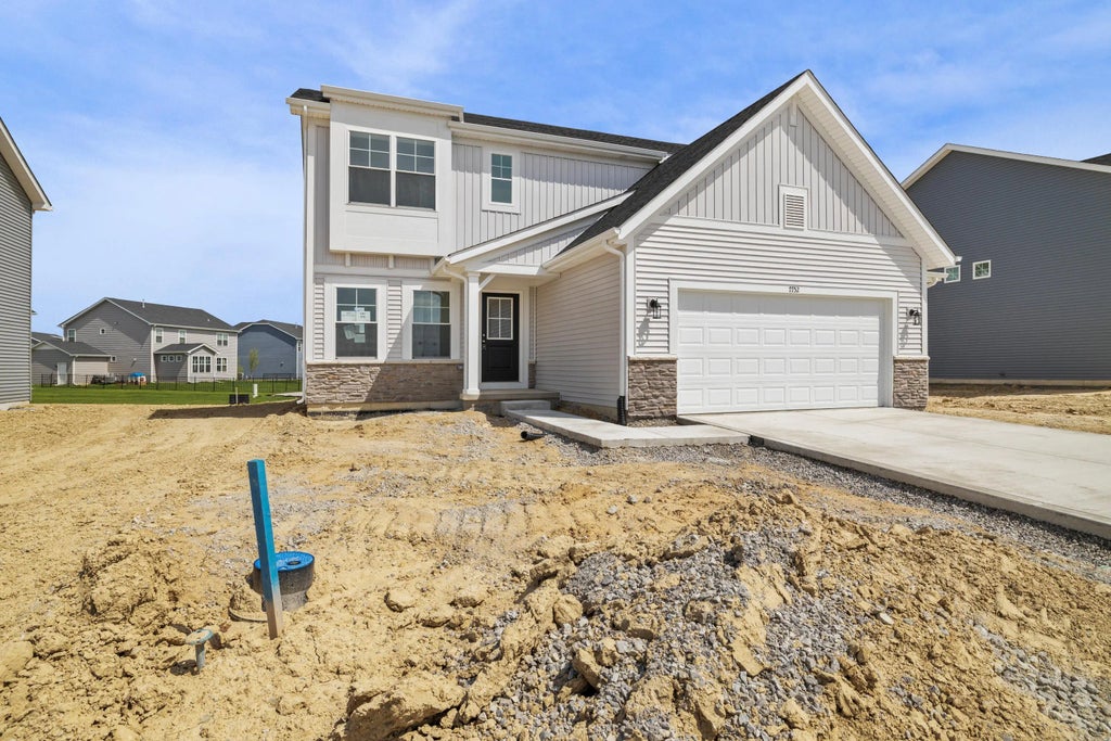 Now available! Welcome home to the Sage. Built for comfort and modernliving, this two-story, three-bedroom home is perfect for a small family.Through the front door, and past the powder room, you'll find the open-concept Great room with a contemporary fireplace, kitchen, and dining space.Off the kitchen, glass doors open to a patio with a pond view backyard. Thekitchen showcases quartz counters, and ss appliances. Durable LVP flooringcovers the main floor. The second level offers an Owner's Suite with walk-incloset, two more beds, guest bath, loft, and finished laundry room. This homealso features a full basement with rough-in plumbing, and side extendedgarage. Enjoy peace of mind with a 10-year structural warranty, 4-year workmanship on the roof, and Industry-Best Customer CareProgram. Visit the Sage in Clover Grove today and discover aplace where you belong!