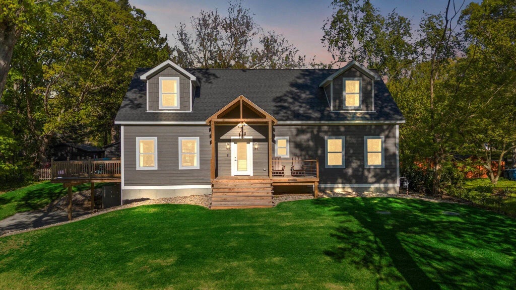 Welcome to 207 Twilight Drive, an impeccable Michiana Cape Cod nestled away in the trees, yet near the breathtaking shores of Lake Michigan. This home features 5 spacious bedrooms, 4 bathrooms and a flowing floor plan. Interior finishes consist of neutral toned flooring, beautiful white quartz kitchen counters, tons of natural light, providing you with all of the light and airy beach vibes throughout. Sleek, black stainless steel appliances and an expansive island complete the kitchen. The open concept living area serves as a fantastic space to entertain with sliding doors that lead you out to a sprawling deck, perfect for dining alfresco. Your spacious main floor primary bedroom features a spa-like en suite bathroom, complete with a picturesque soaking tub. Heading into the walkout basement, you will find a massive bedroom, a 3/4 bathroom, and two living areas, serving as great space for a home gym, family room, or storage for your beach toys. A long driveway leading to the one car garage allows ample space for parking. Electrical has been ran in the garage for an EV Charger. Sitting on almost a quarter acre lot, there is no shortage of room to roam outside. The backyard features a graveled space, complete with a fire pit to end the perfect summer day. Tucked away in the trees, yet just a 15 minute walk to the beach, Stop 50 Pizzeria, and a short walk to Michiana Day Camp. Whether you are looking for a vacation rental, secondary or full time living, this home checks all of the boxes!