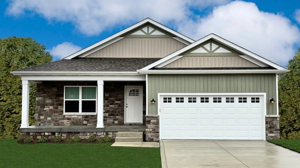 This is our MAGNOLIA MODEL, an open concept 2034 sq ft ranch home with 4 bedrooms and 3 bathrooms. Features include great room w/vaulted ceiling, kitchen w/maple cabinetry, GRANITE in bathrooms and kitchens, soft close kitchen cabinet doors and drawers, crown molding, pantry, stainless steel microwave and dishwasher, black or brushed nickel hardware and lighting, fully landscaped (sod in front, netted/seeded sides and rear), vinyl and stone exterior, concrete patio, drive and walks, garage door opener installed. Photos of a prior build.