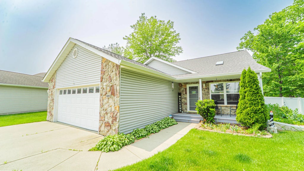 Welcome to this beautifully maintained 3-bedroom, 3-bath home nestled on a quiet cul-de-sac! Bright, open, and move-in ready, the spacious living room greets you with soaring cathedral ceilings, gleaming hardwood floors, and a cozy fireplace--perfect for relaxing evenings. The updated eat-in kitchen opens to a 20x16 deck, ideal for enjoying any time of day with scenic backyard views. The main floor primary suite offers comfort and convenience with a large full bath and an oversized walk-in closet. Hobbyists and DIYers will love the heated garage, complete with hot and cold water lines. Located just minutes from shopping, parks, baseball fields, and major expressways, this home blends comfort and convenience in a sought-after location. Don't miss your chance--schedule your private tour today!