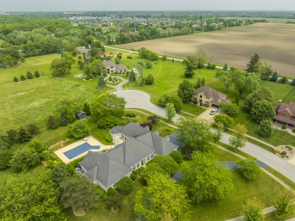 AMAZING, Over 10,000 square feet, Custom All Brick Ranch - 1 1/2 Story, Related Living Potential, 5 Beds, 6 Baths, 3 Car Attached Garage, Inground Heated Pool, Hot tub, Fenced yard on approx 2 Acres and so, so much More!! Main level with Marble Foyer, Formal Living & Dining Rooms, Custom Ceiling, Oversized Trim Detail & Hand Carved Swarovski Crystal Fixture. Kitchen with custom cabinetry, Granite and Corian counters, Breakfast Bar & pro-series appliances, including 3 ovens. Great Room w/ floor to ceiling windows and Fireplace, trayed ceilings, premium carpeting and accent lighting. Primary suite w/ W/I closet, TV included, ensuite, double vanity, steam shower, whirlpool tub and staircase to loft and secret 20 x 17 WIC w/ built in shelving and safe. 2 Additional bedrooms with custom window and ensuite Baths. Main floor Laundry and Guest Bath. Family room w/ 8' French doors, indirect lights, chandelier, herringbone hardwood, gas FP, open formal staircase, wet-bar leading to indoor 6 person hot tub, leading to upper level Library/Loft w/ built-ins and 2 more bedrooms and bath. Finished basement with storage, audio system, additional rec room w/ FP, Wet Bar, hardwood and large oversized windows. Generator. Backyard has gas grill, inground approx 16 x 24 ft heated, lite pool w/ 4ft - 6ft deep, nestled on nearly two acres. 2-220 Electric 2,-50 water heaters, 3 Furnaces/3 AC - Electric. Water softener owned. 2' x 6' Construction. Exterior wired for AT&T and Antenna. Taxes don't reflect homestead exemption, should be approx. 12000 a year . Crown Point Schools. 13 Month HWA Home Warranty offered.