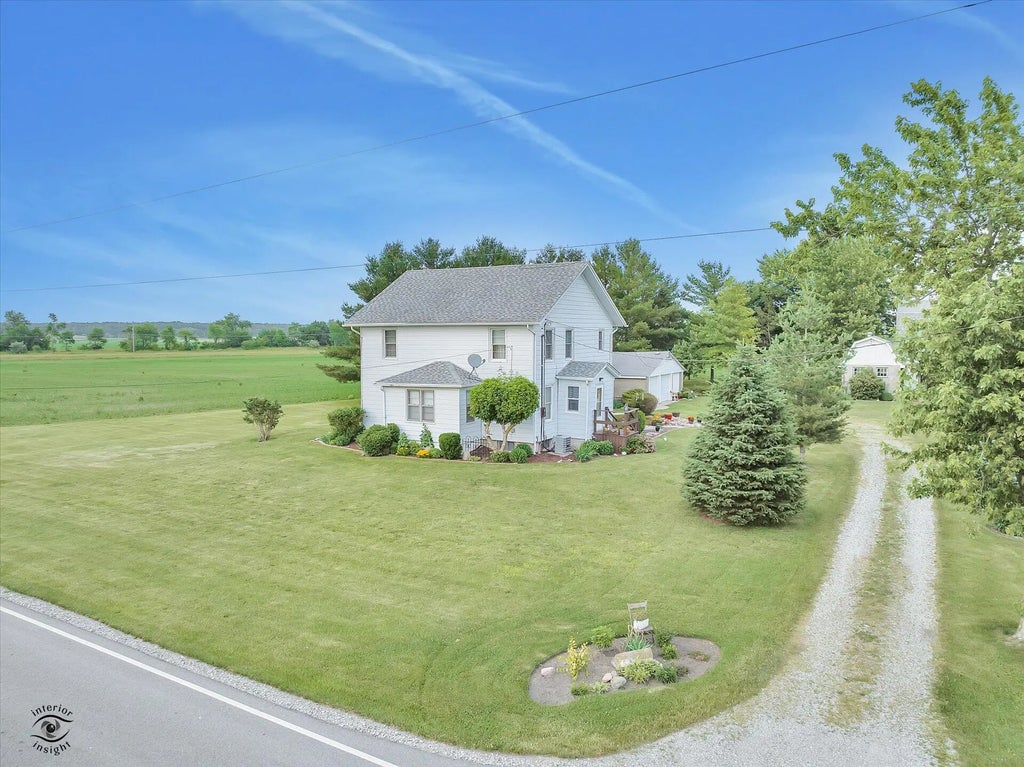 Welcome to this charming 4-bedroom farmhouse, offering 1,942 square feet of cozy living space with beautiful hardwood floors on the main level and a spacious three-car garage, all nestled on the beautifully landscaped setting in the desirable Crown Point school district. This peaceful rural retreat is perfect for family gatherings, outdoor adventures, or simply enjoying the quiet of country living. Stroll through multiple floral gardens or unwind with your favorite beverage in one of the serene sitting areas.A true highlight of the property is the impressive 34' x 62' barn with new garage door with opener--ideal for potential income storing vintage cars, boats, or campers beyond current crop income. Upstairs, the open loft features a basketball hoop, creating a fun space to shoot hoops year-round, rain or shine. Adjacent to the barn, you'll find a separate workshop or cozy sitting room--perfect for creative projects, relaxing with a book, or entertaining guests in a unique space.The home has already been pre-inspected, with the current owner addressing major findings including replacement of windows, new gutters on the three car garage, updates on electrical among items upgraded, so you can move in with confidence and start enjoying everything this inviting property has to offer.
