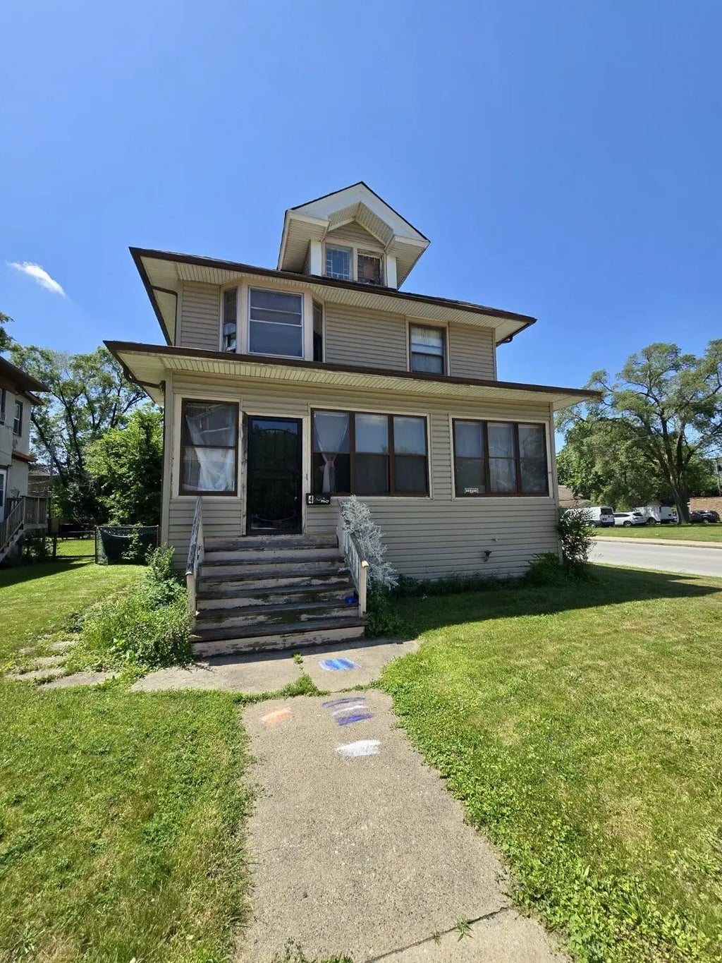 Step into timeless charm with this 1909 corner-lot home, featuring original wood floors and trim throughout. A fully enclosed front porch welcomes you into a stunning foyer highlighted by a grand staircase and built in bench. The main floor offers a spacious living room, formal dining room with built in cabinets, and kitchen. Upstairs, you'll find four generously sized bedrooms and a full bathroom, with additional access to the attic for storage or future expansion. The large, unfinished walk-out basement includes washer/dryer hookups and plenty of potential. Outside, enjoy a fenced backyard--perfect for pets, gardening, or relaxing. Don't miss your chance to own this classic beauty!