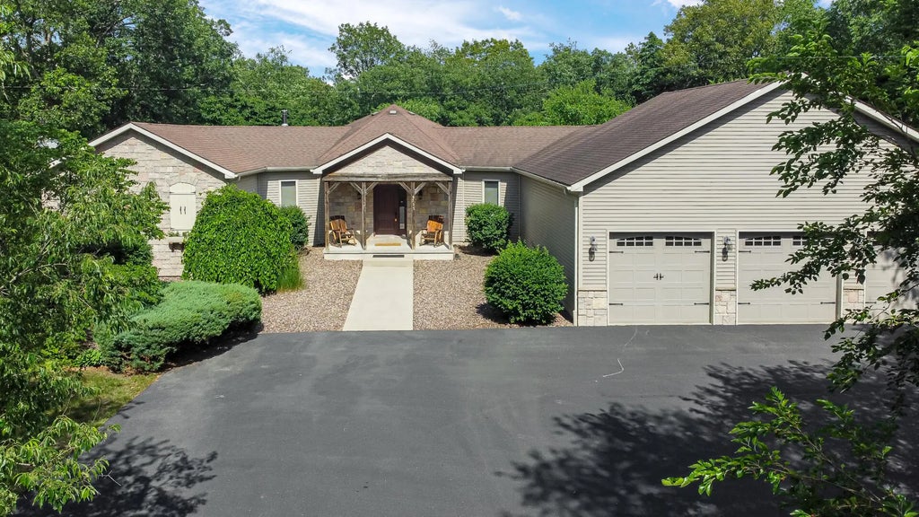 Nestled on a serene, wooded hillside lot with a meandering creek, this 3-bedroom, 2-bath ranch offers the perfect blend of nature and comfort. Step inside to discover custom flooring throughout and panoramic views from every window, flooding the home with natural light and showcasing the beauty that surrounds you.Enjoy open-concept living, a spacious kitchen, and a cozy atmosphere ideal for relaxing or entertaining. Don't forget the walk out basement, and partially finished space being used as a recreation room, and fiber optic hook up. The oversized 3-car garage provides ample space for vehicles, hobbies, or storage. Whether you're sipping morning coffee on the deck or exploring the wooded acreage, this property feels like your own private retreat.Some of the other features of the house is a wood burning furnace if you choose to use it, and a whole house generator.Don't miss this rare opportunity to own a piece of paradise!If 3 plus acres isn't quite enough, be sure to consider the attached 3 acres to the south, with tons of beauty, trees, and berry patch!