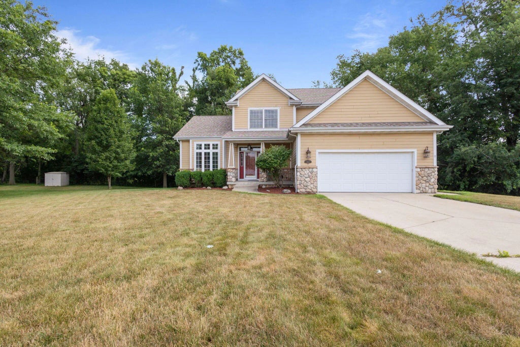 No disappointment only excitement with this 2 story home in desirable Rustic Hills Subdivision and Critchfield School District. Be ready for the school year in this immediate possession home. 9ft ceilings adorn the main floor as the light shines through the large windows. Family room offers beautiful wood floors, a gas fireplace, dry bar and wine fridge overlooking the private back yard. Upper level offers 3 bedrooms and 2 full baths, while the finished walk out basement offers an additional full bath, great room, kitchenette or craft area, along with 2 additional rooms previously used for bedrooms (only small windows in each room). Over 3000 sq ft of living area and an oversized 2 car garage. Newer roof is just a bonus to this home situated on a quiet Cul-de-Sac.