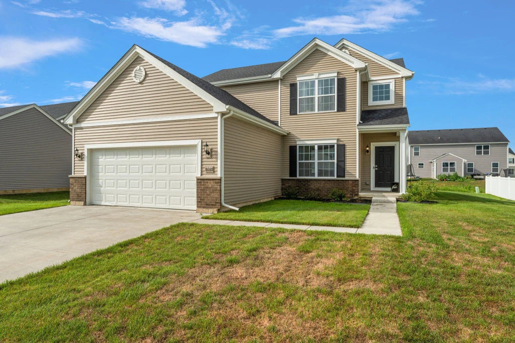 Beautiful Home in Heritage Falls Subdivision located in Lowell, Indiana!!This like-new, four-bedroom, three-bathroom, two-story home in the desirable Heritage Falls subdivision offers 2,115 sq. ft. of spacious living & a full unfinished basement! The open-concept main level features soaring 9-foot ceilings and a seamless flow between the great room, kitchen, and dining area--perfect for entertaining. The kitchen includes stainless steel appliances with an additional five-year warranty. Additional main floor amenities include a versatile flex room, a convenient powder room, and a laundry area. The upper level boasts a luxurious main bedroom with an en suite bath, walk-in shower, double vanity, and a spacious walk-in closet. Three additional bedrooms provide ample space, closet storage, and comfort. Spacious backyard oasis perfect for outdoor entertaining, family gatherings, or create your own dream garden! A two-car garage completes this move-in-ready home!!