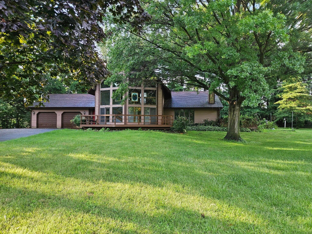 Welcome home to this attractive, well maintained 3 BR/2BA Chalet style home in Jackson Township. This property features a detached garage with a 2 Bedroom upper level apartment that is currently vacant. The apartment has seperate utilities and it's own well and septic system. The home exterior boasts over 700 sq.ft. of decking, 4.35 acres of land and includes a pond. The interior of the home speaks for itself with cathedral ceilings, oak flooring, skylights, stone fireplace and transom windows with scenic views. The oversized 700 sq.ft attached garage offers plenty of storage.