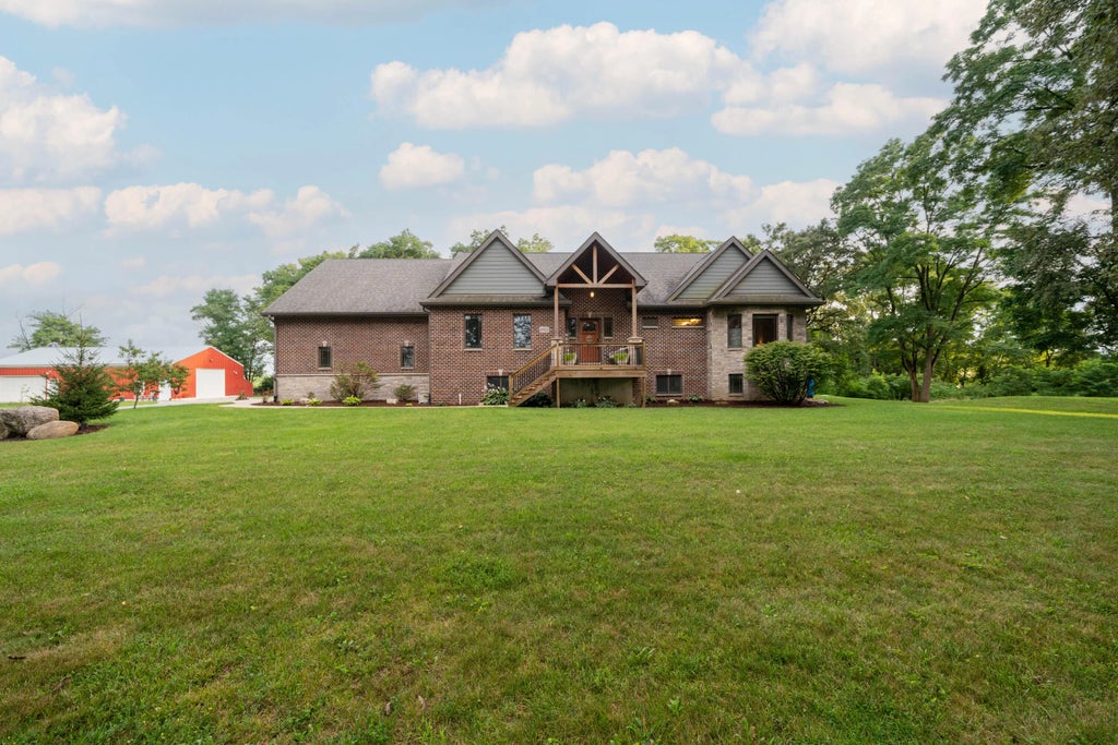 Imagine waking to the rustle of oaks on your 6.79-acre sanctuary at 9415 E. 129th Avenue, Crown Point, Indiana. This 2,804 sq. ft. brick home, built with 2x6 framing and blown-in insulation, offers warmth and elegance. A 2,204 sq. ft. unfinished walkout basement awaits your vision, while a 27x37 ft. garage with heated hydronic floors and two large doors (16x8, 10x9) ensures year-round comfort.**Key Features:**- **Living Spaces:** Cook in the 16.5x13.5 kitchen with gas oven, hood vent, fridge, dishwasher, and microwave--all included. Enjoy meals in the 16.5x11 dining room or relax by the wood-burning fireplace in the 14x19 family room.- **Bedrooms & Baths:** The 13x17 primary suite features an 11.5x12 en-suite bathroom. Two bedrooms (15x11, 11x13) and two 6x8 bathrooms offer space and comfort. A 22x27 bonus room upstairs suits any need--office, playroom, or studio.- **Outdoor Retreats:** Unwind on the 14x12 screened-in porch or 16x12 deck. Gather around the fire pit under starry skies, surrounded by lush, oak-shaded grounds.- **Comfort Systems:** Enjoy endless hot water from a 200,000 BTU instant water heater/boiler, paired with a commercial-grade water softener. Radiant hydronic heat warms the basement and garage floors, with provisions for a pole barn.- **Pole Barn & Extras:** The 60x30 pole barn has a 100-amp panel, water supply, and gas line stub. Stubbed utilities to grain bins inspire creative uses like guest quarters. The barn's car lift and washer/dryer are negotiable.This property blends rustic charm with modern amenities, offering a canvas for your dream lifestyle. Contact us for a private tour of this tranquil Crown Point oasis!Agent/buyer to confirm all measurements.