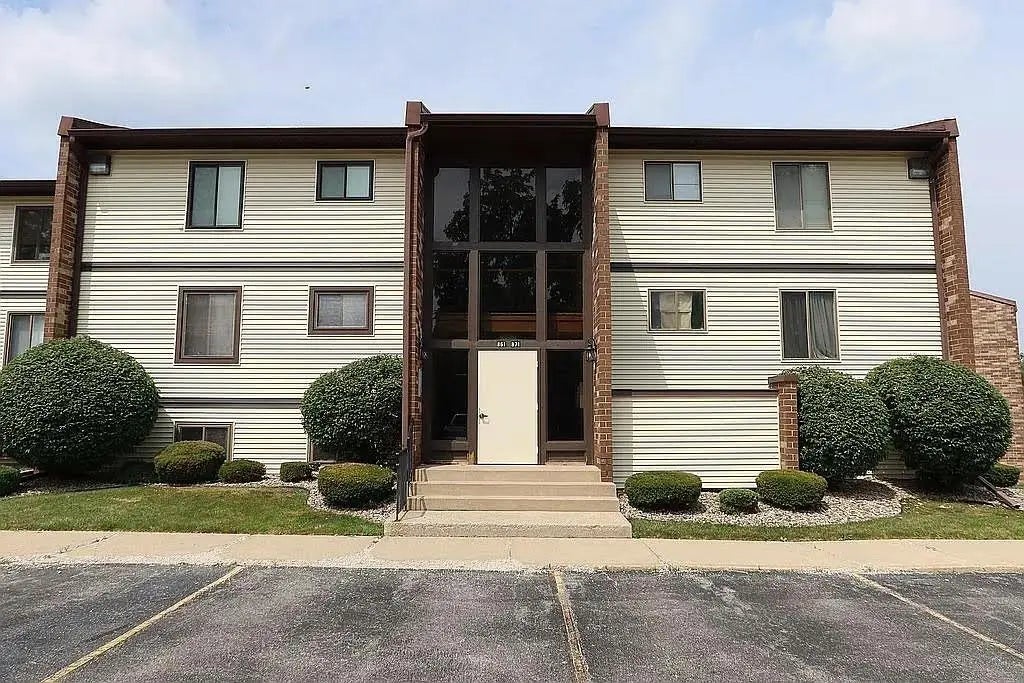 Step into this beautifully updated 2 bedroom, 1 bath condo featuring an open-concept floor plan and fresh modern finishes.. Luxury vinyl plank flooring flows throughout the living room, kitchen and hallway. The kitchen offers a convenient pantry along with stainless steel refrigerator, gas range and microwave. The stylish bath boasts a vanity with quartz countertop, tile surround tub/shower and tile floor for a modern touch. Relax on the private balcony overlooking the sparkling pool and peaceful wooded backdrop, with an extra storage closet for added space. A convenient coin-operated laundry is located in the lower level. Perfectly located close to shopping, dining and the historical downtown Crown Point Square.