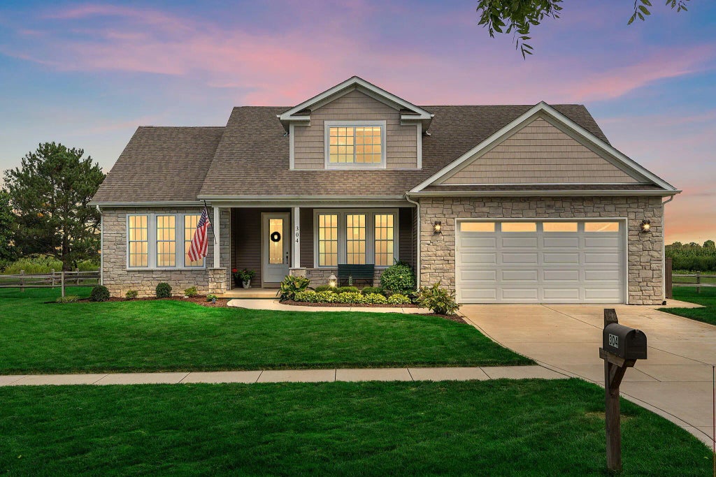 This beautifully maintained 2,026 sq. ft. home on a .36-acre lot in Kouts, just 10 minutes from Valparaiso, features an inviting covered front porch, composite deck, and fenced backyard with peaceful views of open farmland. Inside, the great room offers soaring 18' vaulted ceilings, a cozy gas fireplace, and abundant natural light, flowing into the spacious kitchen with granite countertops, stainless steel appliances, walk-in pantry, and dining area. The home includes 3 bedrooms and 2.5 baths, highlighted by a private primary suite with walk-in closet, tiled shower, and granite finishes. Additional features include luxury vinyl plank flooring, 9' and 10' ceilings, laundry room drop zone, powder room, concrete driveway, and a fully insulated 2.5-car garage with 10' ceiling. Lovingly cared for by the original owner, this home combines comfort, quality, and convenience in a desirable location.
