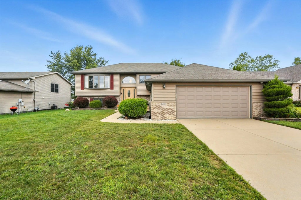 This 3-bedroom, 3-bath beauty blends timeless character with modern updates in a way buyers will love. From the moment you step inside, the oak staircase and oversized bay window set the tone--flooding the formal living room with natural light and overlooking the professionally landscaped yard. The home is filled with quality finishes: rich oak cabinetry and pantry storage in the kitchen, solid 6-panel pine doors, and oak-trimmed bathroom vanities that add warmth and style. The owner's suite is a retreat, boasting a walk-in closet and a private bath with a soaking tub and separate shower. Downstairs offers incredible flexibility with a spacious third bedroom, oversized laundry/storage room, and a welcoming recreation room with a corner fireplace--perfect for entertaining or cozy nights in. Additional highlights include: Finished lower level, new siding & new hardwood floors upstairs, poured concrete foundation, sprinkler system, 26x24 attached garage with heater hookup. All this in a prime location near HWY 65, shopping, dining, and Hidden Lake Park. Appliances and a home warranty are included, making this home move-in ready and worry-free. Don't miss the chance to make this well-loved property your next address!