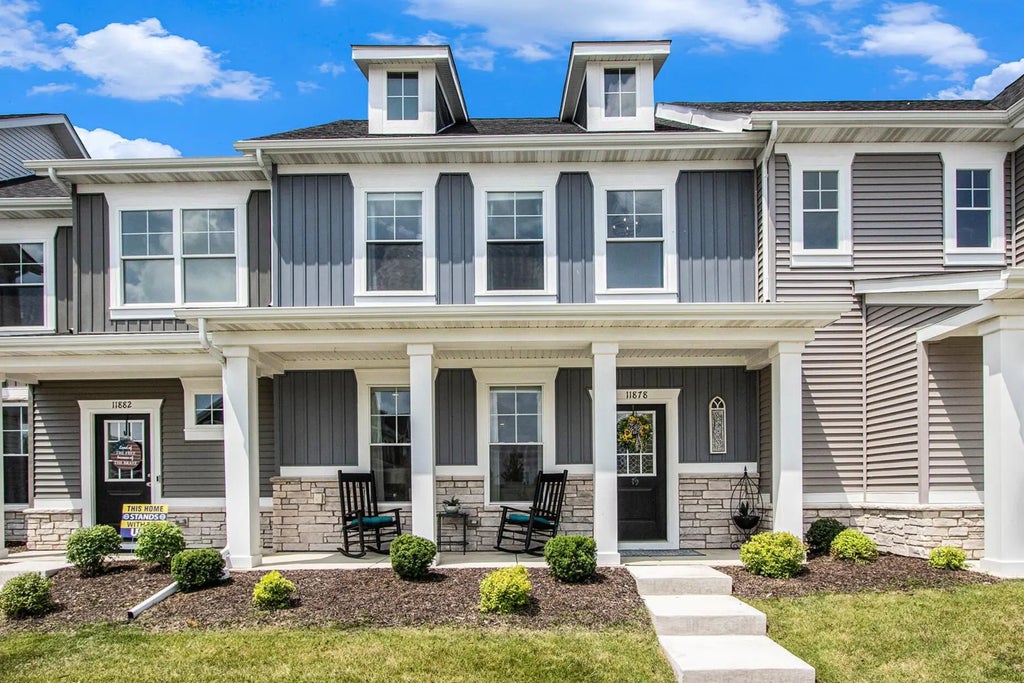 Better than new - Luxurious Walkerton Park townhome in Crown Point - available NOW! Immaculate inside and out and loaded with premium upgrades - this home is THE ONE you've been looking for. Kitchen features a custom marble backsplash, granite counter tops, GE stainless steel appliances INCLUDED, white cabinetry with custom pulls and crown molding, deep divided stainless steel sink and more. Dinning room area can accommodate a large table and additional furniture. Open concept living room has a built in custom electric fireplace with shiplap, and big windows that flood the space with natural light. Stylish and upgraded light fixtures throughout. Quality window treatments also included! Main level has durable LVP wood look flooring. Upstairs features a full bath, convenient laundry (washer/dryer INCLUDED), and 2 large bedrooms. Main bedroom has accent wall, unique propeller fan and walk-in closet too! Smart home features include a Ring doorbell, Honeywell HomePro smart thermostat and Chamberlain Wi-Fi garage door opener. Cozy and private courtyard connects home to the 2 car garage. Premium lot backs up to open green space with a walking path and benches. Unbeatable location - near expressway for travel and commuting - plus close to all the shopping and restaurants this area is know for! Nothing to do but move-in and start enjoying this great property. Schedule today and make this nearly new house your home!