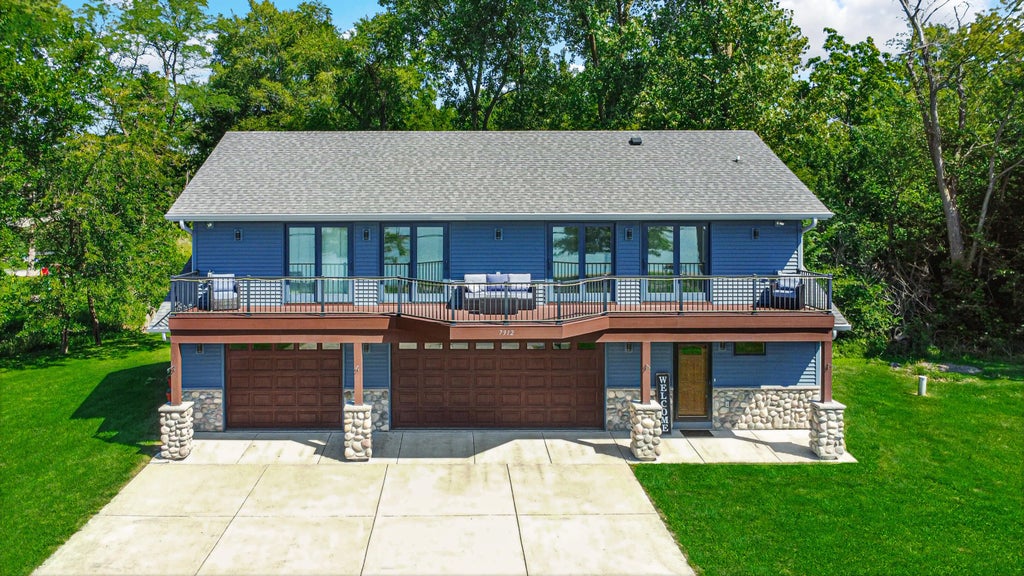 LUXURY, LAKE LIVING in COMPLETELY REMODELED, 3Bdrm/3Bth, 2-Story Home w/ PANORAMIC LAKE VIEWS, located directly across from Public Access to CEDAR LAKE, a 794-Acre RECREATIONAL LAKE, just 45-Miles from DOWNTOWN CHICAGO = Weekend Retreat, Airbnb, or Year-round RESORT LIVING! Foyer WELCOMES YOU into Main Level w/ Private Bedroom Suite, including REMODELED Bathroom. Foyer also has Access to 3.5 Car Garage, which is Heated/Cooled and Finished w/ GRANITE-TOP Built-ins and RECESSED LIGHTING = AMAZING PARTY ZONE! Vaulted, Upper-Level LIVING SPACE includes Large Living Rm, which is OPEN CONCEPT to Kitchen w/ RICH CABINETRY, Custom Backsplash, Granite Cntrtps, & SS Applcs. Wide Plank Flrng flows from Living Space into 2 Upper-Level Bedrooms, including Primary Suite w/ Access to Deck/Balcony overlooking Lake. Double Sliders from Living Rm and Dining Area also lead to Deck/Balcony. Generac System included for PEACE of MIND. Additional 75x100 Side Lot is INCLUDED = TONS of POSSIBILITIES.