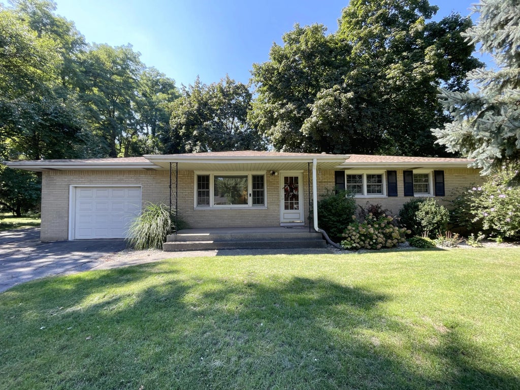 This ranch home with a full basement sits on a .76 acre lot & has so much to offer! 1 car attached garage with a bonus 2 car 720 SF pole barn! Enjoy the 3 season room that overlooks the private fully fenced in backyard! Beautiful arborvitaes line the back of the yard that includes a pool, large deck, patio, & multiple sheds for storage! Roof on home is only a year old & water heater is 3 months old! There are 3 bedrooms upstairs with a potential 4th in basement & 3 bathrooms! Hardwood floors upstairs & all appliances included! Enjoy a quiet neighborhood while still being near the highway for an easy commute! Being sold AS IS! Schedule a showing today on this great property!