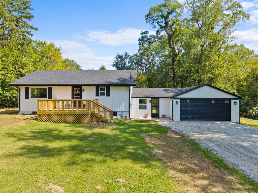 Welcome Home! This beautifully renovated 3-bedroom, 2-bathroom ranch is move-in ready and sitting on nearly an acre of land. Step inside to a spacious living room that flows seamlessly into the open kitchen, creating a comfortable and inviting layout. Down the hall, you'll find two bedrooms and a full bathroom. The finished daylight basement expands the living space with a second gathering area, kitchenette-style setup, a third bedroom, full bathroom, and laundry room--perfect for flexible living needs or entertaining. Enjoy the convenience of an attached 2-car garage connected by a really nice and functional breezeway. Thoughtful updates have been completed throughout, including a new roof, mechanical systems, windows, interior/exterior doors, and modern finishes inside and out. So much to list! This home has been thoughtfully remodeled from top to bottom--don't miss your opportunity to make it yours!
