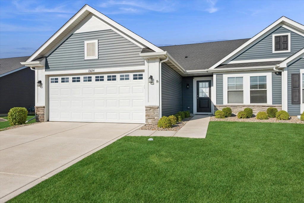 READY NOW--no waiting on construction delays! This beautifully maintained duplex offers the comfort of established new construction with just one previous owner, so you get the look and feel of brand-new without the wait. Enjoy modern living with a sun-filled open floor plan, custom kitchen with granite and stainless steel, private den with French doors, and a tucked-away primary suite with walk-in closet and private bath. With landscaping, irrigation, and thoughtful upgrades already in place, this home is move-in ready and stress-free. Golf Cart friendly community.