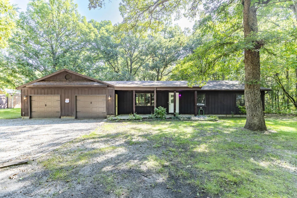 Welcome to this 3 bedroom 2 full bath ranch home on approximately 2 acres! Enjoy the convenience of a tandem 4-car attached garage plus a large pole barn which spans approximately 50' x 40' with a workshop and 9K lift, The inviting front porch is ideal for morning coffee while the deck off the kitchen with a pergola offers a great spot to relax or entertain. Located just 5 minutes from I-65, this property combines country living with quick access to town. Primary bedroom offers its own primary bath with a walk in closet. Plus a second main full bath for the other bedrooms and guests. Plus another bonus attached to the pole barn is a lean-to. LOW Indiana taxes!