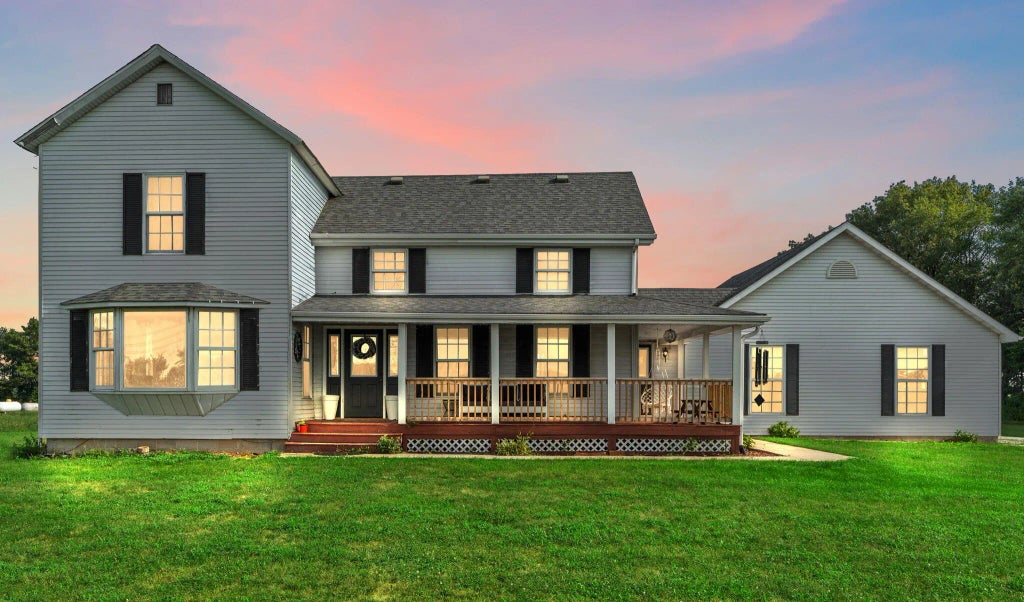 Check out this RARE opportunity in highly sought after,Morgan Township! This Farmhouse Charmer is situated perfectly on over 8 acres! Upon arrival, you will be greeted with a truly picturesque view, and a dreamy wrap around porch. The Main floor offers gorgeous hardwood floors throughout and a very functional floorplan. The kitchen comes well equipped with solid wood cabinetry, a huge center island, butcher block countertops and stainless steel appliances. The dining area is generously sized and placed perfectly between the kitchen and living room. The living room features a wood burning fireplace and picture window that provides an abundance of natural light. There is a large bathroom with a HUGE tiled shower and tasteful finishes. Upstairs you will find the unique primary suite that provides an ensuite bathroom, walk-in closet, and an attached bonus room. There are 2 additional bedrooms that complete the upper level. There is a large partially finished basement that offers a rec room & an additional room that is currently being used as a 4th bedroom. Outside you will find an attached 3 car garage, a designated fire pit & shooting range. This property is truly one of a kind!