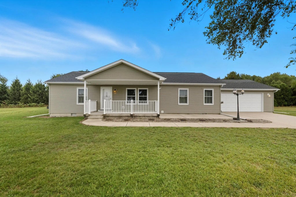Welcome to your immaculately clean and move-in-ready retreat! This well-maintained 3-bedroom, 2-bath ranch sits on over 2 acres across 2 parcels, with the flexibility to sell one parcel separately after purchase. Offering more than 1,500 sq. ft. of living space, this home combines comfort, functionality, and room to grow. Step inside to find a spacious kitchen with a center island, beautiful wood cabinetry, and all appliances included. The open layout is perfect for entertaining, and each bedroom features a walk-in closet for plenty of storage. The primary suite includes a private ensuite bathroom, offering comfort and convenience. Outdoors, enjoy the peace and quiet of your own space with a covered front porch, composite decking, an extended driveway with extra parking, and a wooded area behind the home for added privacy. The oversized 2-car garage comes with built-in storage shelves, making organization simple. This home is being offered as-is, giving you the opportunity to make it your own.