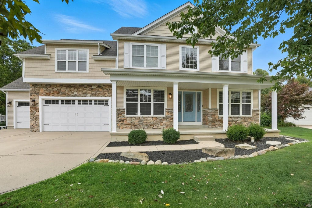 Step into the impressive two-story foyer and be greeted by the warmth of newly stained hardwood floors that flow throughout the main living areas. The living room invites you to gather around the floor-to-ceiling stone fireplace, perfect for cozy family evenings or entertaining guests. The heart of the home--the kitchen--features stainless steel appliances, abundant counter space, and sliding doors that open to a rear deck, seamlessly blending indoor and outdoor living. Share meals and memories in the formal dining room adorned with elegant crown molding and wainscoting, or work from the private office with French doors, offering quiet focus while staying connected to home life. The primary suite is a true retreat, complete with a luxurious jetted tub, separate shower, and a generous walk-in closet. Three additional guest bedrooms provide comfort and privacy for family or visitors. The finished daylight basement offers a spacious family room and full bath, perfect for movie nights, playtime, or hosting friends. Outside, a yard provides room for kids and pets to play, while the 3.5-car garage ensures plenty of storage. Located near excellent schools, parks, shopping, and with easy access to major highways, this home offers both convenience and a strong sense of community. Don't miss the opportunity to make this exceptional home yours--schedule your private tour today and experience all it has to offer