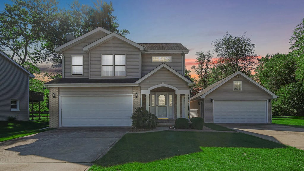 A HOME YOU WILL LOVE TO COME HOME TOO!! Beautiful 2 story has it all!! Covered front porch/entryway. Step inside the front door to a foyer with open staircase, living room, dining room, well appointed kitchen with pantry, finished laundry room and 1/2 bath on main. All kitchen & laundry appliances stay. Upstairs you'll find 3 generous bedrooms, 2 full baths (one in main) murphy bed in 3rd bedroom stays, great closet and storage space. 4 car garage space (2 attached, 2 detached) both heated, detached has air too. The .41 acre lot is 150 x 120 with lush lawn and landscaped located on a quiet dead end street on Hobart's coveted South side. HUGE party deck freshly stained/painted. Furnace and Central Air NEW 2024. Meticulously cared for by original owner. Better Hurry to see it - THE BEST ONES SELL FAST!!