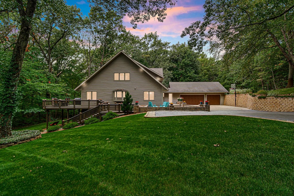 Escape to your own private sanctuary, perfectly secluded on over seven sprawling acres, complete with a campsite and trails.. You will immediately feel the stress of the day melt away as you journey up the long, tree-lined driveway, arriving at a private yard with impeccable landscaping, all nestled among mature trees. The impressive stonework on the exterior only hints at the quality within. Step inside through the large entry foyer and discover a main level designed for both comfort and grand living. The window-filled living room, crowned with tall ceilings, and the formal dining room are perfect for gatherings. The heart of the home, the kitchen, features the cutest breakfast nook where you can sit, sip your coffee, and gaze out at the beautiful view of trees and visiting wildlife. The main level also hosts the newly remodeled laundry room--a space so bright and functional, you'll actually want to do laundry in it. Retire to the huge primary suite, a true retreat complete with a private en suite bathroom. An architectural catwalk upstairs connects three more bedrooms, all of which are exceptionally large, along with a full bathroom. The "wow" factor continues in the finished basement, an entertainer's paradise featuring a 5th bedroom and a convenient second kitchen. Step outside to enjoy the expansive wrap-around deck, or relax in the private hot tub. Peace of mind is guaranteed with a whole-home Generac generator. For the hobbyist, entrepreneur, or collector, the property's crown jewel is the HUGE pole barn. This is not just storage; it's a fully operational second building featuring: full Climate Control (Heating & Air Conditioning), high-Speed Internet connection , a 2-Post Car Lift and massive ceilings high enough to store a full-size RV. With a three-car attached garage completing the package, this special listing, where pride of ownership shines through every detail, must be seen to be believed.